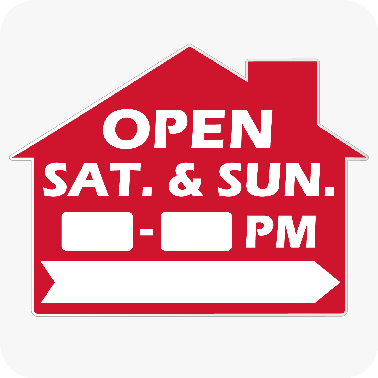 Open House Saturday and Sunday w/ Hours - House Shaped Sign 18 x 24